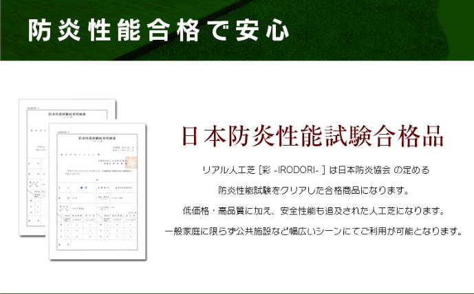 - 商品名:防炎リアル人工芝 彩-IRODORI-